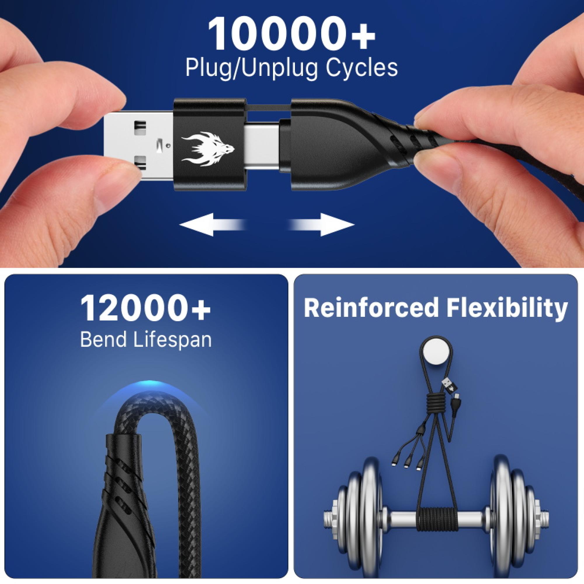 This 10-foot braided nylon cable is built to last, rated for 12,000+ bends and 10,000+ plug/unplug cycles. A smart chip provides over-voltage, short-circuit, and over-heat protection to keep your devices safe. The long reach is ideal for charging from across the room, behind couches, or at your desk without needing to be right next to the outlet. Whether at home, work, or on the go, this cable simplifies your charging setup while offering durability and versatility.