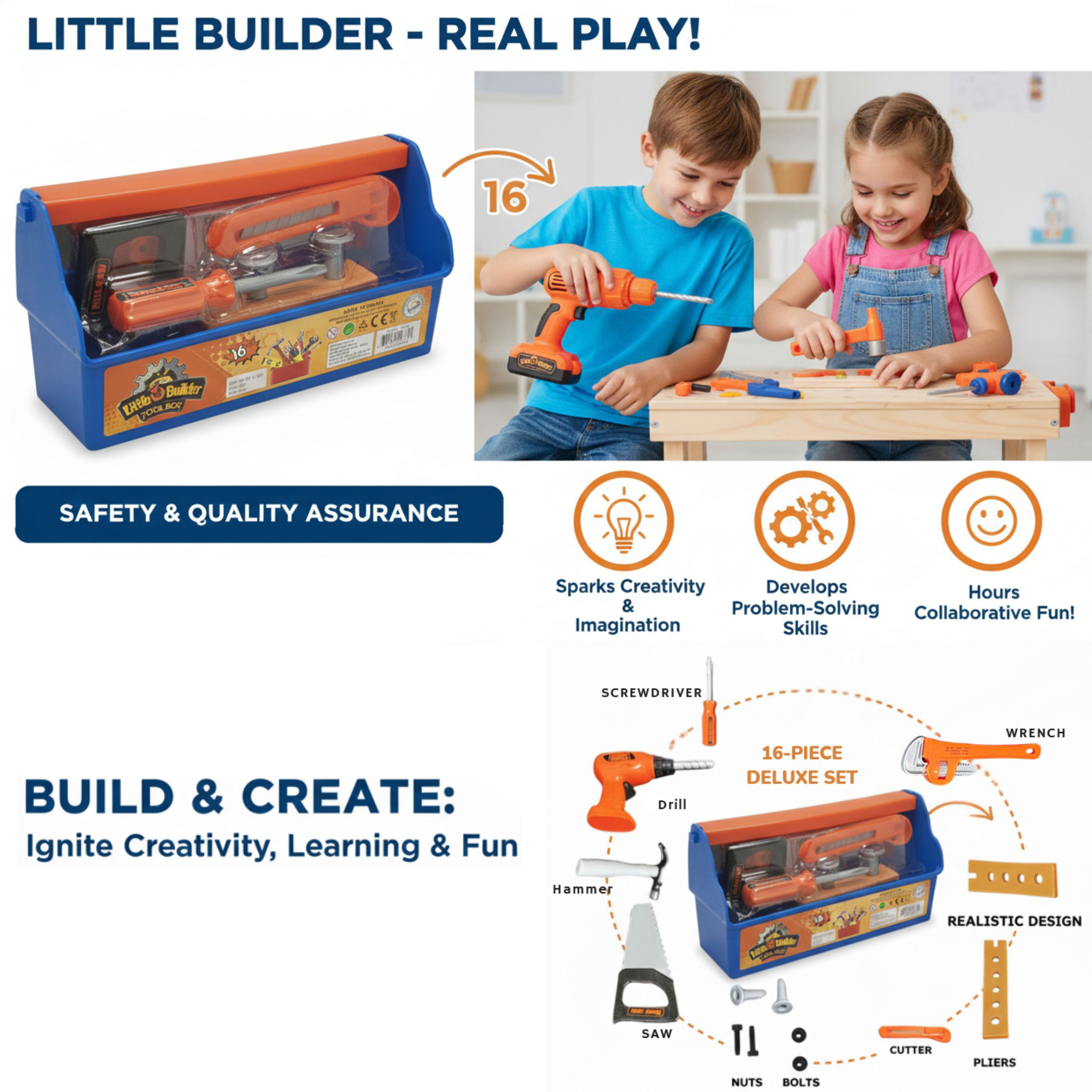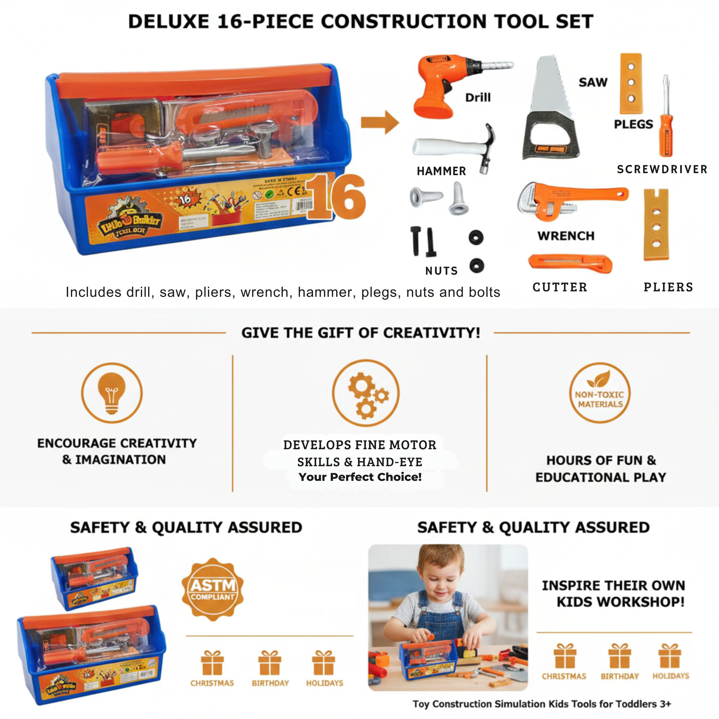 Fix it Handy Man Toy Construction Simulation Kids Tools for Toddlers Christmas Birthday Gifts 16 pcs