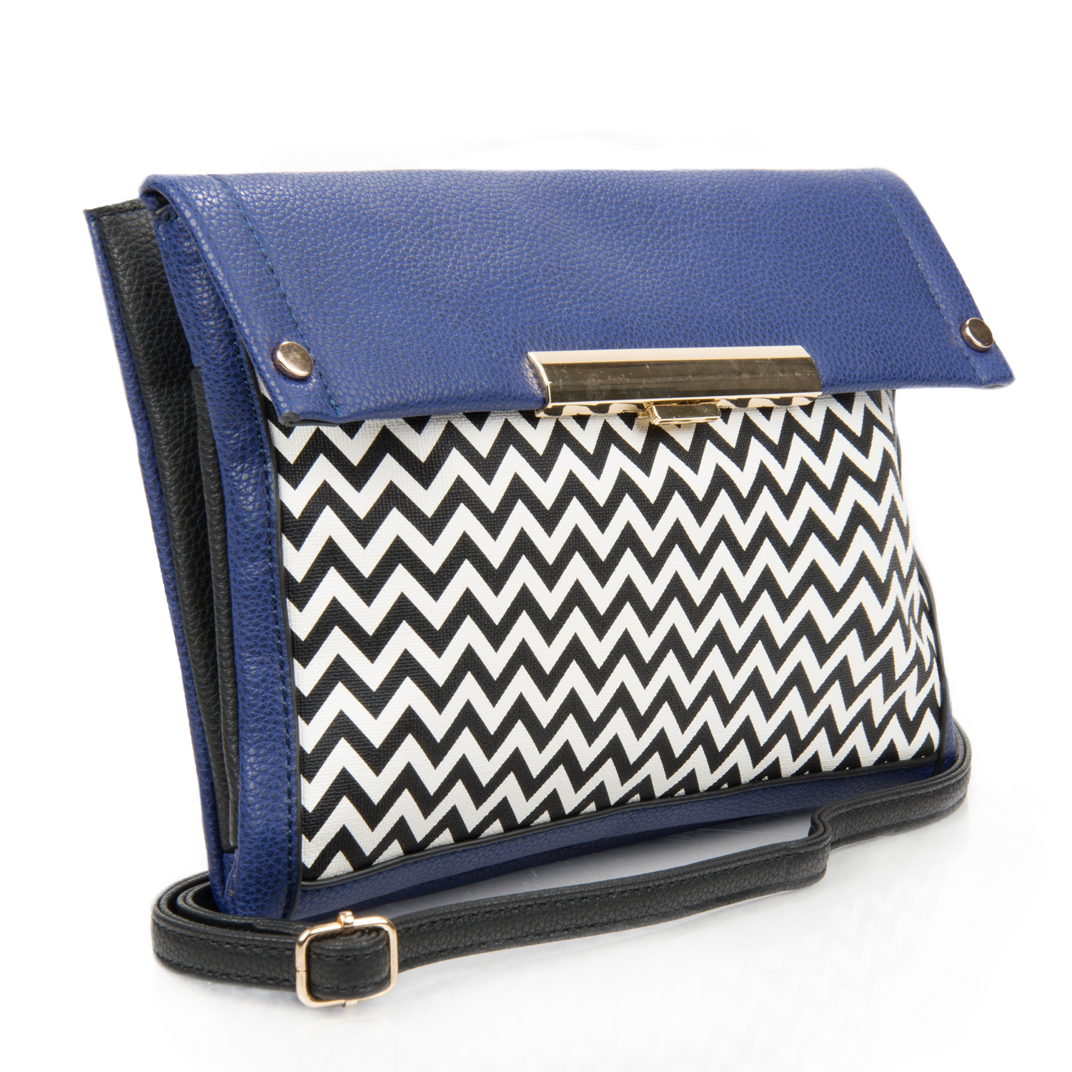 Removable shoulder strap allows bag to be worn as a clutch or handbag