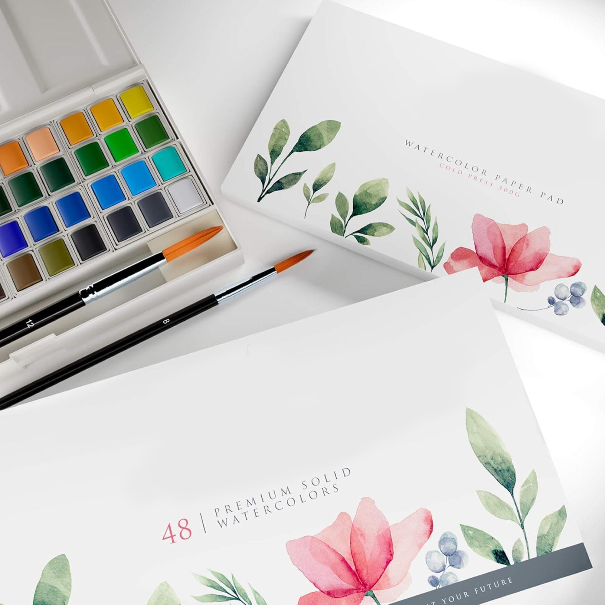 48-Color Watercolor Paint Set with Brushes and Paper – Beginner Painting Kit for Kids, Students Adults