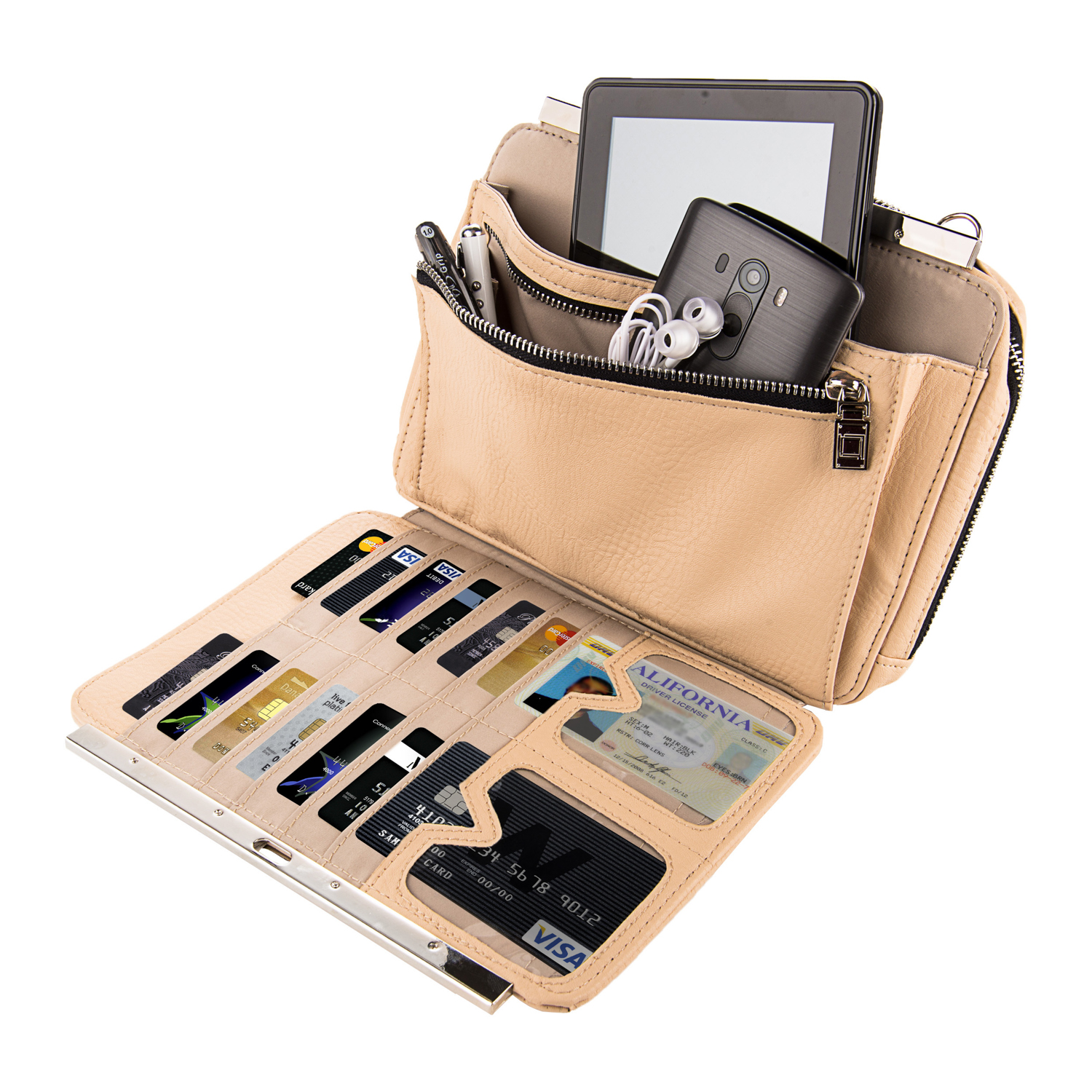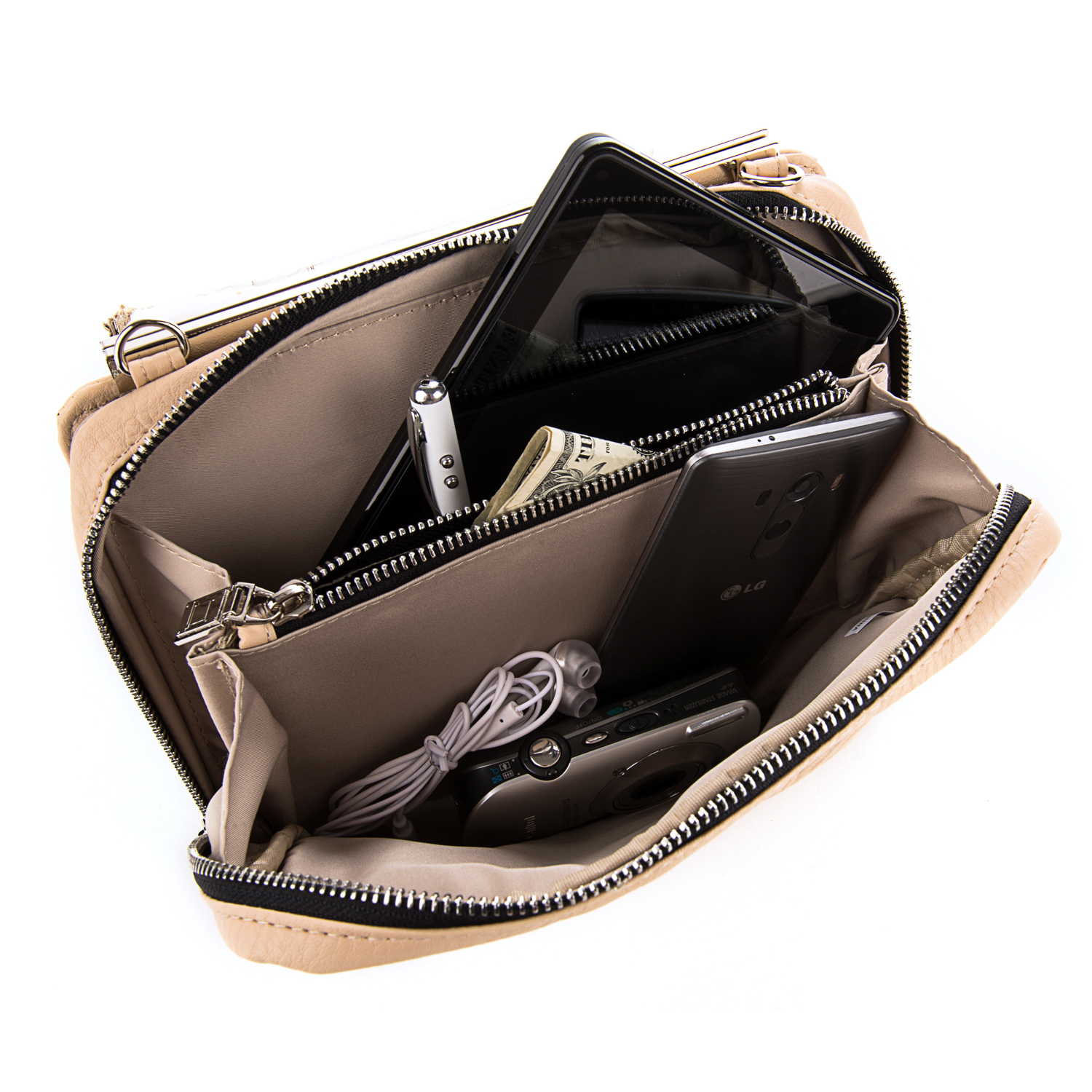 Front slip pocket with magnetic closure for cell phones and smaller accessories.