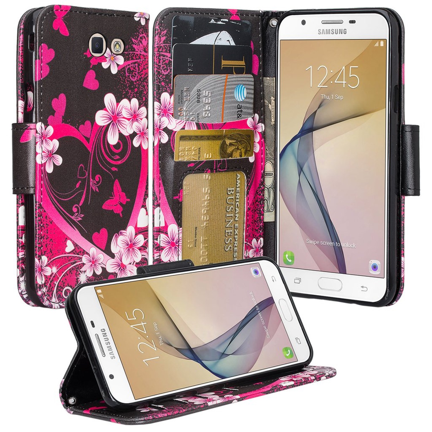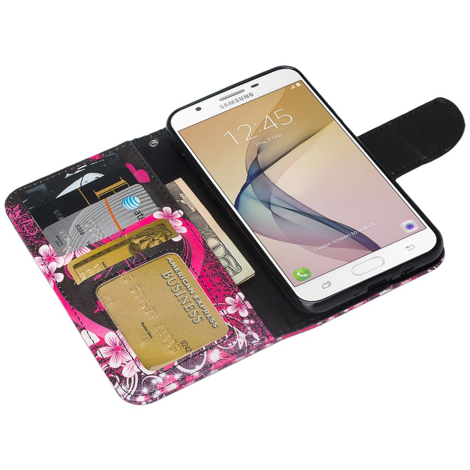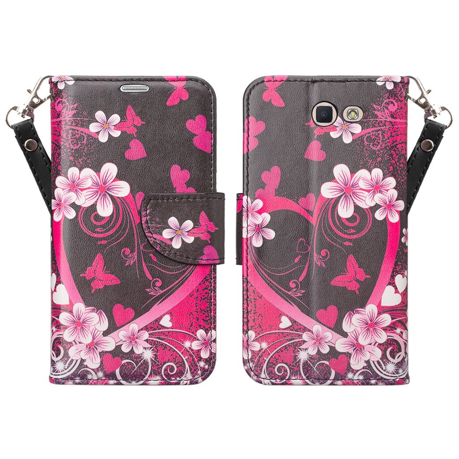 (Pink Flower) Design Wallet Stand Case for Samsung